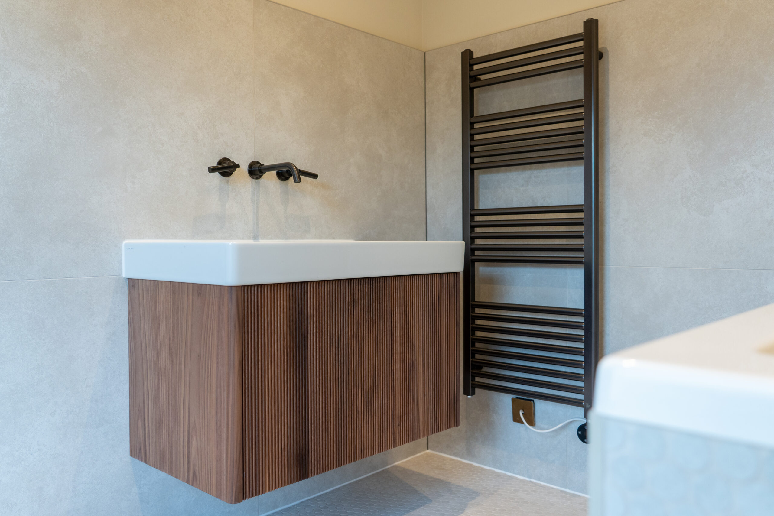 The renovation is being delivered in carefully planned phases to minimise disruption to daily life. Phase One included the guest bedroom and en-suite, master bedroom, and family bathroom. Each space was designed with its own distinct identity, yet unified through a cohesive palette, layered textures, and refined detailing that enhances the home’s period character.